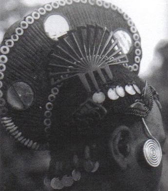 The coiffure hairstyles included working in decorative beads, medals, wood, bone and pins into the braided hairstyle.