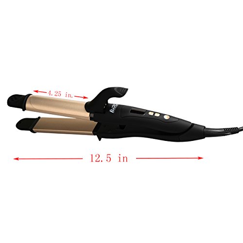 Digital temperature controls from 275 to 450℉ salon high heat(120C to 220C), With fast heating function.US plug: Dual voltage system 120V to 240V for worldwide use. The tourmaline technology, ceramic coated plates, Tourmaline Ceramic Technology enables plate to produces a potent mass of negative ions.