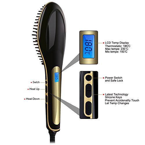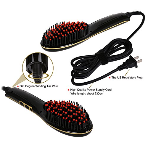 ADVANTAGES: The digital hair straightener replacing traditional flat iron straightener. A combination of hair straightener and comb. It helps solve your hairstyle problem and support head massage without any harm. SAFETY: It is designed with precise temperature control to guarantee anti scald and warm contact massage. Built-in automatic constant temperature and fast heating technologies. FUNCTIONS: The hair straightener is anti-static, anti-scald and anti-hair broken, Easily solve hair knotting, reduce pain and hair broken, repair the hair quality of harm. Head massage make hair follicle of scalp more healthful and bright and elasticity with hair.
