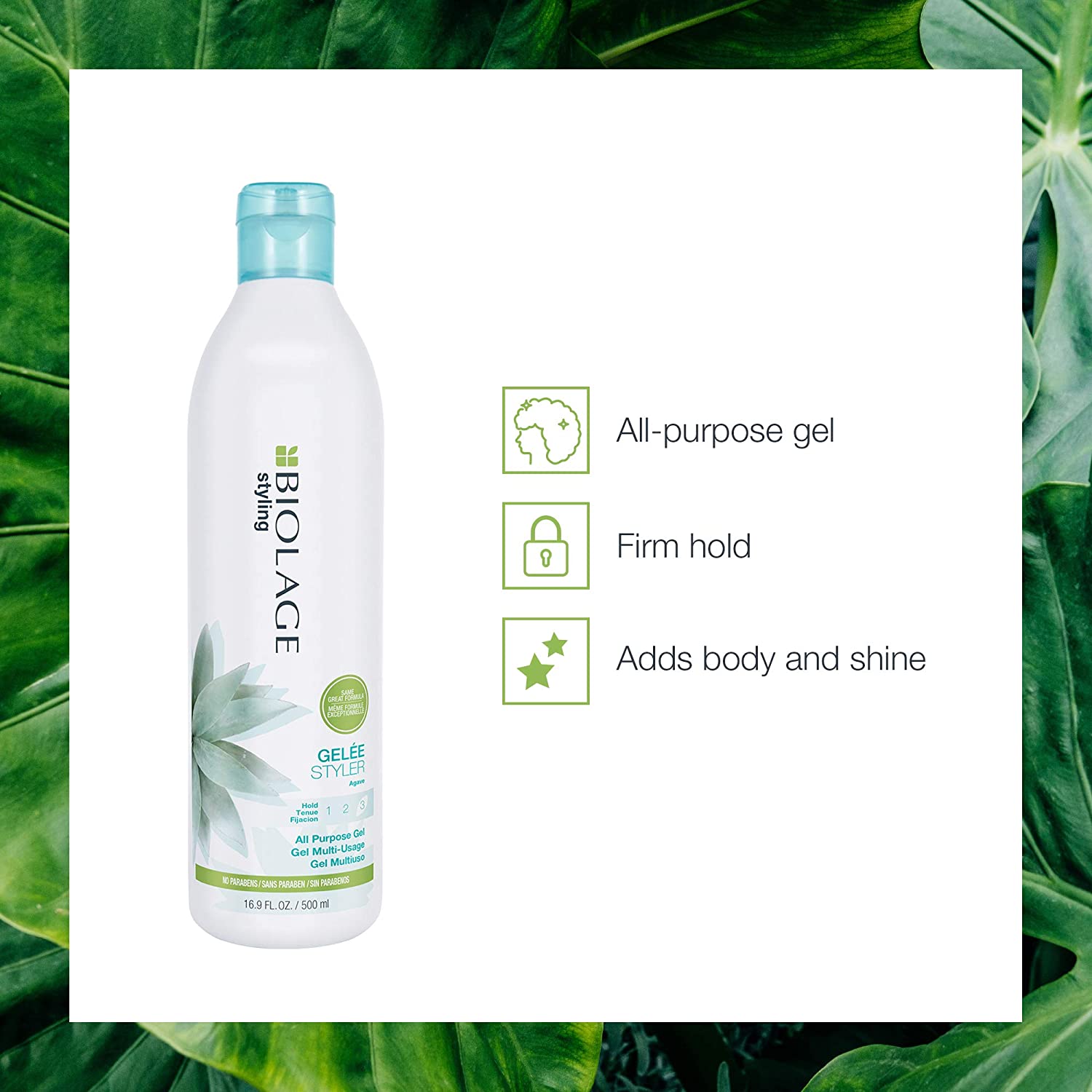 Product benefits All-purpose gel with firm hold. Adds body and shine. No parabens, no mineral oil, no artificial colorantsAll-purpose gel with firm hold. Adds body and shine. No parabens, no mineral oil, no artificial colorants