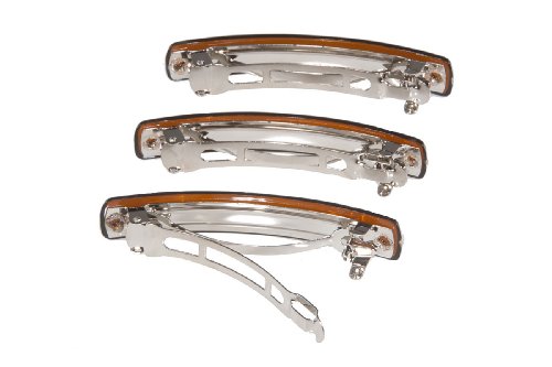 Secure your beautiful hair-style with these classic brown barrettes! – Set of 3 (three) barrettes Spring open closure for ease of use. Barrettes measure 3 inches long and 1/4 inch high.