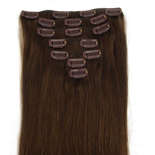 Gallery of Clip In Remy Real Human Hair Extensions 20 Inch Dark Brown/medium Dark Brown Chocolate Brown (4#70g)