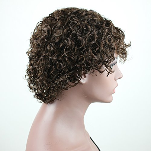 The wig is made of 100% pure human hair in 6A grade Remy Brazilian virgin hair, no tangle no shedding, none synthetic hair is mixed. Non lace wig cap, all made by machine weft, with clips and adjustable strap. The wig is with medium size cap 22.5inch in medium brown color, use high quality Swiss lace, with baby hair all around, all knots are bleached slightly to make it more natural.