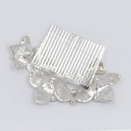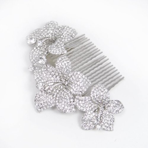 Gallery of EVER FAITH Silver-Tone Bridal 3 Orchid Flower Clear Austrian Crystal Hair Comb