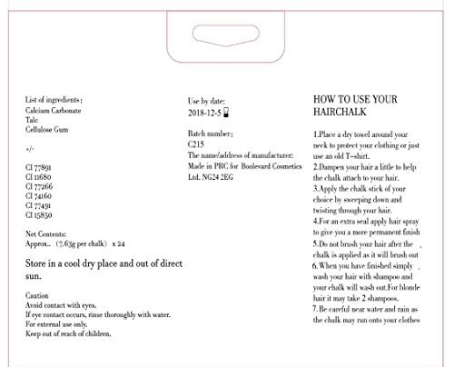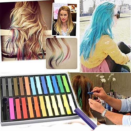 Our vibrant array of temporary hair chalk is the best diy hair chalk available at a low price. The many colors of our pastel hair chalk will match any wardrobe or costume, and the hair chalk set is sure to last a long time, providing you with your money’s worth. Our rainbow hair chalk set is ideal, safe and appealing because it is non-toxic hair chalk, bendable hair chalk, and semi-permanent hair chalk. The hair chalk salon kit is made up of hair chalk dye that has many colors and the colored hair chalk ranges from dark to bright, providing you with many options to mix and match the color hair chalk. The hair chalk kit is your best companion for beautiful colored hair that maintains its vibrancy due to the soft hair chalk. It is the only hair chalk you will ever need or want.24 vibrant rainbow colors Holds up against hair straighteners and curling irons. Semi-permanent hair color lasts up to two-three days. Compatible with any hair texture or color, better on light hair color | For the best result please use on wet hair. Hair chalk may cause staining on fabrics and materials. Please wear gloves before you apply the chalk.