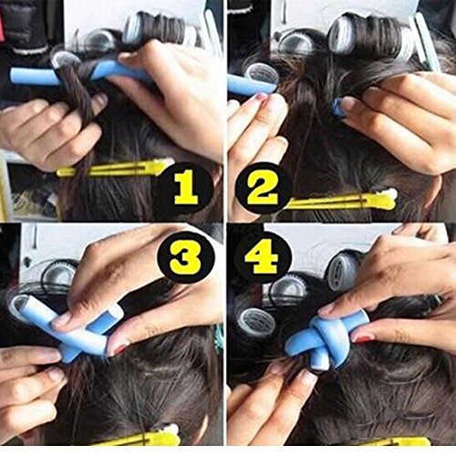 you do not need to heat your hair, I like to use the hair roller, every time I go to sleep, I use the roller to curly my hair when I get up, the hair become so cute when I get up. Lightweight foam rollers in hot style colors are comfortable and easy to use on wet, damp, or dry hair. Create salon-style spiral curls, or make waves to add bounce and volume. Smaller spiral rollers make smaller, tighter waves and spirals, medium sizes make looser waves and spirals. Wind your hair down the rod for spiral curls or around the middle for waves. Simply bend the ends to secure. It’s simple beauty technology for your best look. Can wear on dry or wet hair, easy to use, no pins needed the color will be sent by random Diameter of 1cm,1.2cm,1.4cm,1.6cm,1.8cm,sent in random diameter. Very safe and will not hurt your hair. You also can use it on bed.