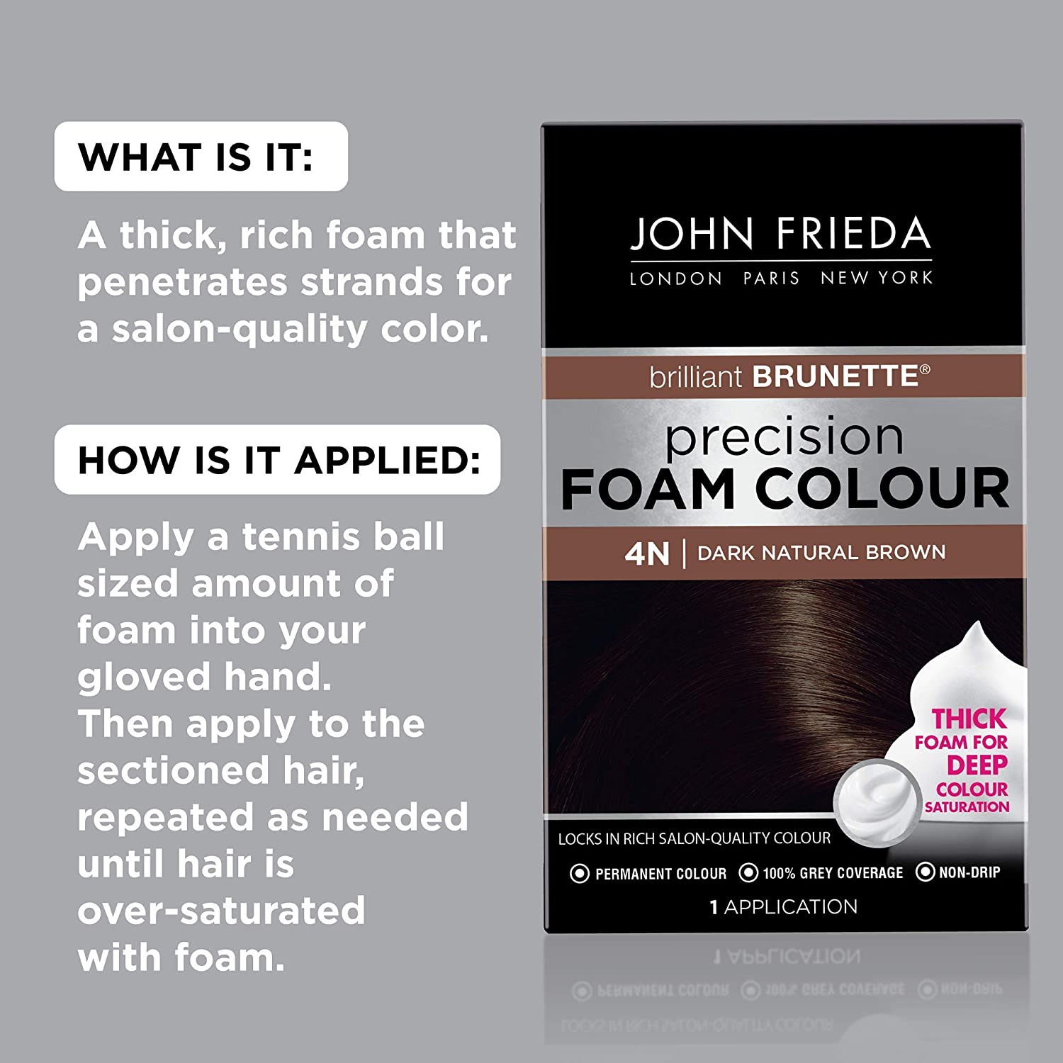 Non-drip foam color spreads easily into roots and hard-to-reach areas for flawless results.