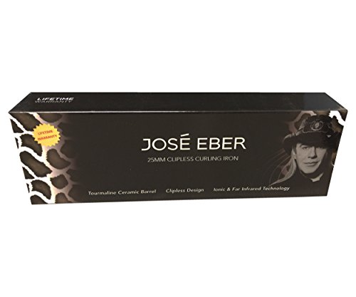 The Jose Eber 25mm Clipless Curling Iron creates larger, bouncier long lasting curls and voluptuous waves that are smoother, shiner, and frizz-free. Create incredible volume and texture while reducing the amount of damage caused by traditional curling irons. The innovative clipless design provides consistent and even heat for faster styling without causing creased or crimped ends. Create a more natural look by curling hair from root to tip, reducing heat at hair’s weakest point – the tips – and save your locks from unnecessary damage. Product Features: Light weight ergonomic design 25mm (1″) clipless barrel Korean tourmaline ceramic barrel 360 degree swivel cord design with hook Professional length power cord Weighted handle for safe resting position Dual voltage 110-240V Temperature 410˚F Negative ion technology