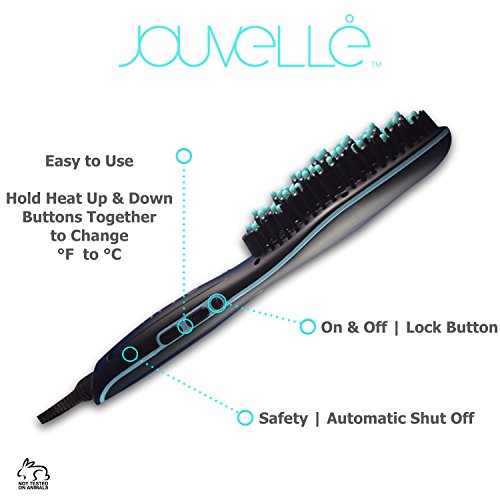 • Safety – Jouvelle Hair Straightener Brush, is made of heat resistant material, anti-burn ceramic bristles, and it shuts itself off if you forget too.