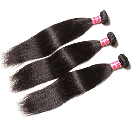 Hair Material:100% unprocessed human hair, grade 6A Brazilian virgin human hair. Hair Quality: no shedding, no tangles, no laces, Can be Straightened, Curled, Bleached and Styled as your own hair. (For the LENGTH, stretching the hair to be STRAIGHT and then measure.)Hair Color: Natural Color, can be dyed always. Hair weight: 95-100g/bundle, Lace Closure Weight: 30-35g15 days no reason to return.