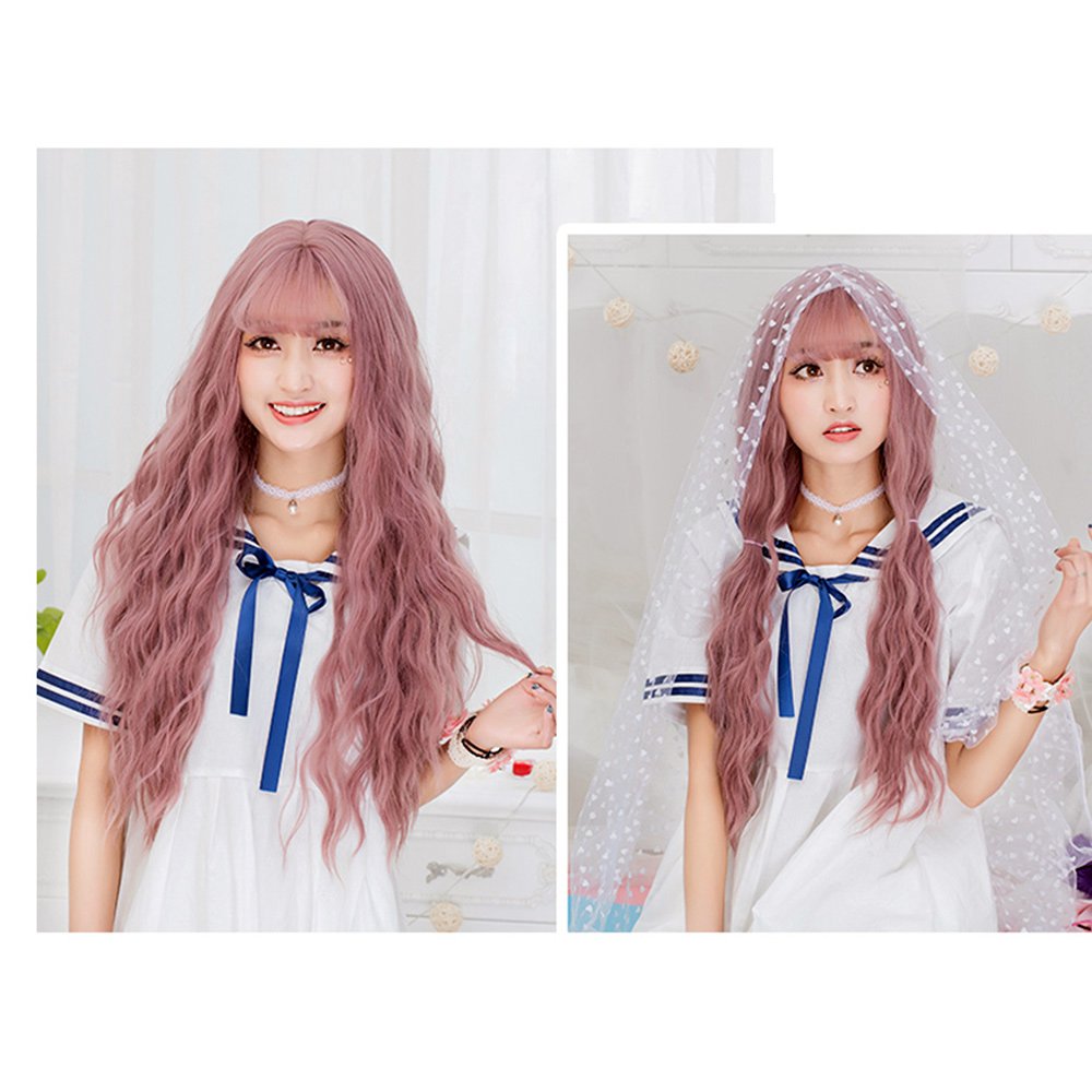 Gallery of Netgo Women’s Purple Long Wavy Heat Resistant Fiber Wig with Fringe Pink
