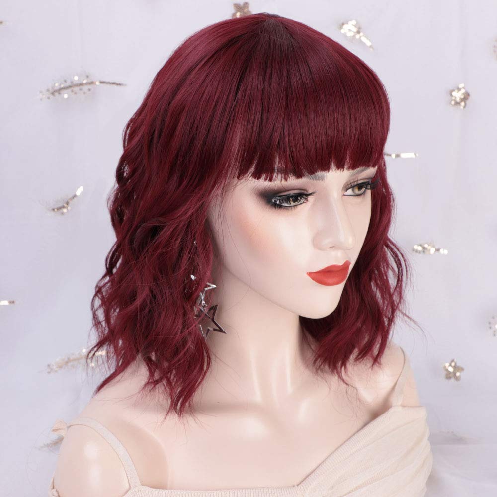 π γNew color and fresh styleγ Want a fresh look? Try this mysterious burgundy wig. Premium heat resistant fiber, soft and natural wavy style. Don’t forget to trim your bangs to the style you want.