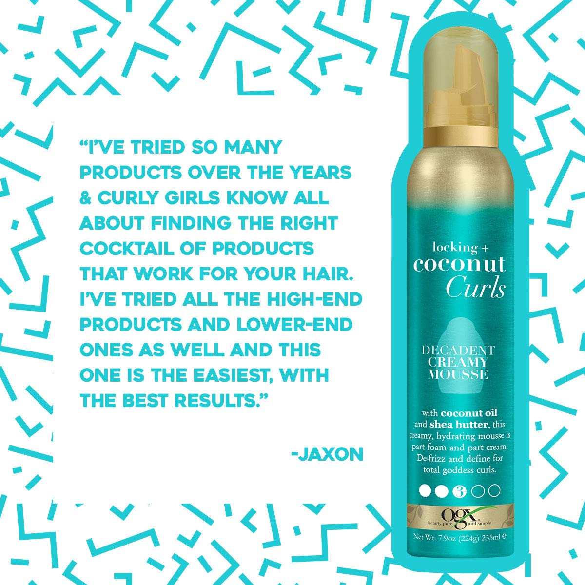 The OGX Coconut Decadent Creamy Mousse is perfect for thick, curly hair. This hair mousse features a lightweight and great-smelling aroma and is infused with hydrating coconut oil to help fight frizz, maintain moisture and leaves you with big, sexy hair that fits your style. This part-foam, part-cream hair mousse enhances and tightens curls when applied to damp hair from roots to end. Gently scrunch into hair to refine curls and let air dry.
