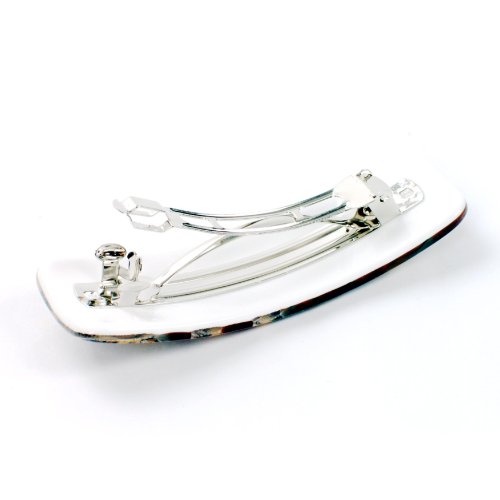 Animal print barrette with cheetah print and brown strips. The silver clip animal print detail is large enough to hold up part of your hair or is great for adding an accent to an up do or your favorite hairstyle. Package includes 1 clip. Animal Print Barrette with cheetah print and brown strips. The silver clip animal print detail is large enough to hold up part of your hair or is great for adding an accent to an up do or your favorite hairstyle. Great for thick and long hair. Animal print- brown, orange, and black. Package includes 1 clip.