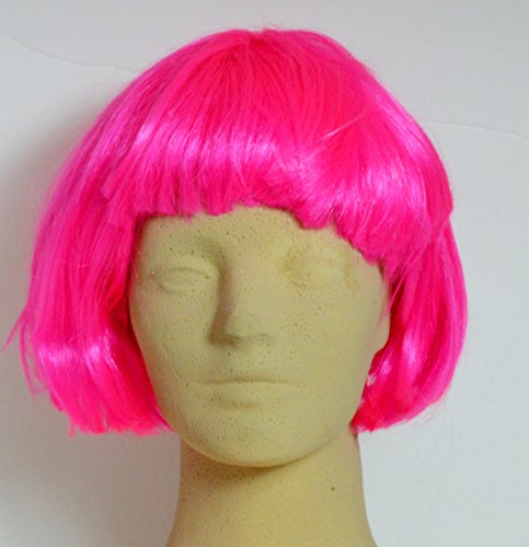Available in 8 different colors. Remove from package and style. Hot pink super model wig is a great addition to any costume.