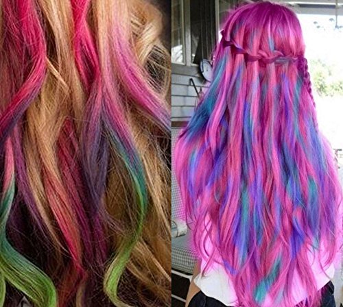 6 Hair chalk pens included 6 bright colors: Silver, Yellow, Rose Red, Purple, Green, Blue; Metallic colors, glitter effect, shows nicely and shiny on all hair colors. Colors can be blended together or can be do individually, make your hair match variety of colors. Easy to apply and dries in 30 seconds, last for about 3 days on hair, easy to wash, it can be washed out normally (for different hair texture may be washed twice).