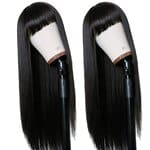 TIMANZO Long Straight Remy Hair Wig Natural Black Heat Resistant Fiber Full Wig with Bangs Cosplay Party Wig for Fashion Women (24 Inches Natural Black Hair)
