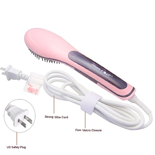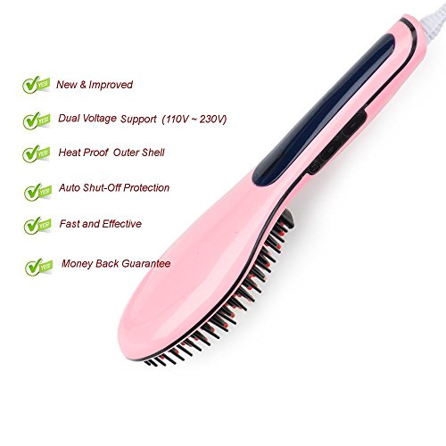 PACKAGE CONTENTS: 1 Digital Hair Straightener Brush, Bonus Red Silicone Massaging Tips, and User Guide. STRAIGHTENS HAIR QUICKLY – Creates a silky smooth professional look much faster than flat iron straighteners. Brush heats up in a few minutes. Our recommendations are: For your thick hair, waves and curls use 210° – 230° C; For your normal hair use 190° – 210° C; For fine hair use 170° – 200° C.MASSAGES AND CONDITIONS – Red silicone tips provide beauty treatment and protect hair from damage. 5 extra tips are included as a bonus to ensure years of successful use. EASY TO USE – Variable temperature control works for all types of hair. Dual voltage operation (110V & 230V). 3 convenient functions: ceramic iron straightener, detangling brush and anti-scald massager. Power is 29 Watts. SAFE DESIGN – Innovative anti-scald design prevents burns. US safety plug and auto shut-off protection. Temperature is always clearly displayed on the LCD for careful control of heat application, resulting in zero damage to your hair. Product warranty is for one year. MONEY BACK GUARANTEE – To ensure your complete satisfaction, we are happy to provide a replacement or refund.