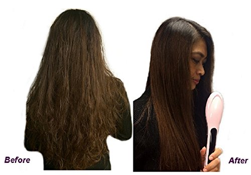 STRAIGHTENS HAIR QUICKLY – Creates a silky smooth professional look much faster than flat iron straighteners. Brush heats up in a few minutes. Our recommendations are: For your thick hair, waves and curls use 210° – 230° C; For your normal hair use 190° – 210° C; For fine hair use 170° – 200° C.MASSAGES AND CONDITIONS – Red silicone tips provide beauty treatment and protect hair from damage. 5 extra tips are included as a bonus to ensure years of successful use. EASY TO USE – Variable temperature control works for all types of hair. Dual voltage operation (110V & 230V). 3 convenient functions: ceramic iron straightener, detangling brush and anti-scald massager. Power is 29 Watts.