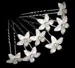 Gallery of White Flower Hair Pins with Rhinestone Crystal for Wedding and Special Event (Set of 8)